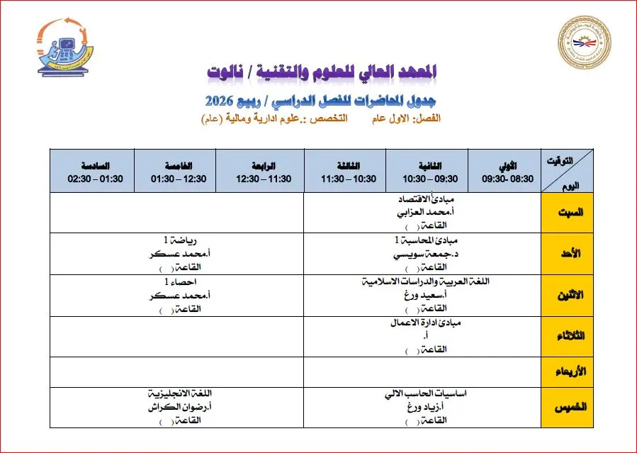 التسجيل و الدراسة و الامتحانات